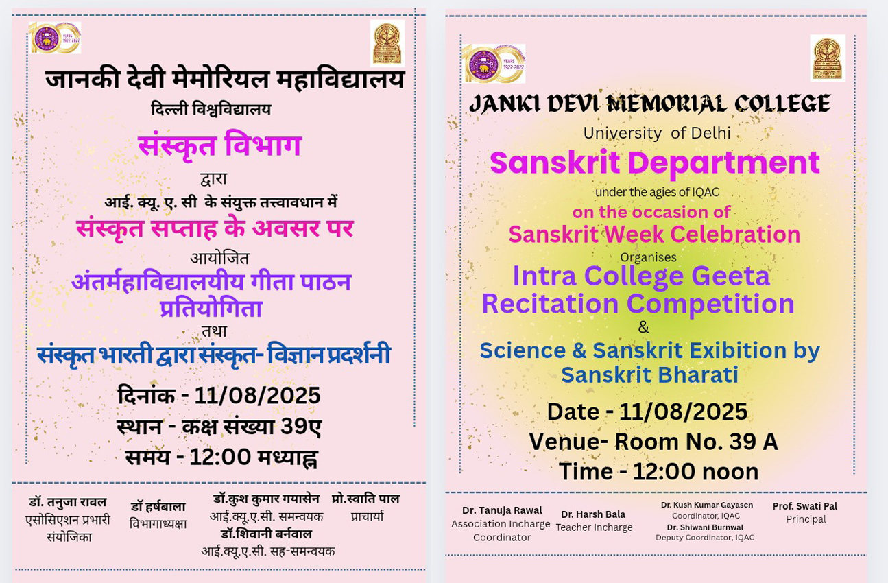 » (posters-Intra - College Sanskrit Recitation Competition on the Occasion of Sanskrit Diwas)Click here